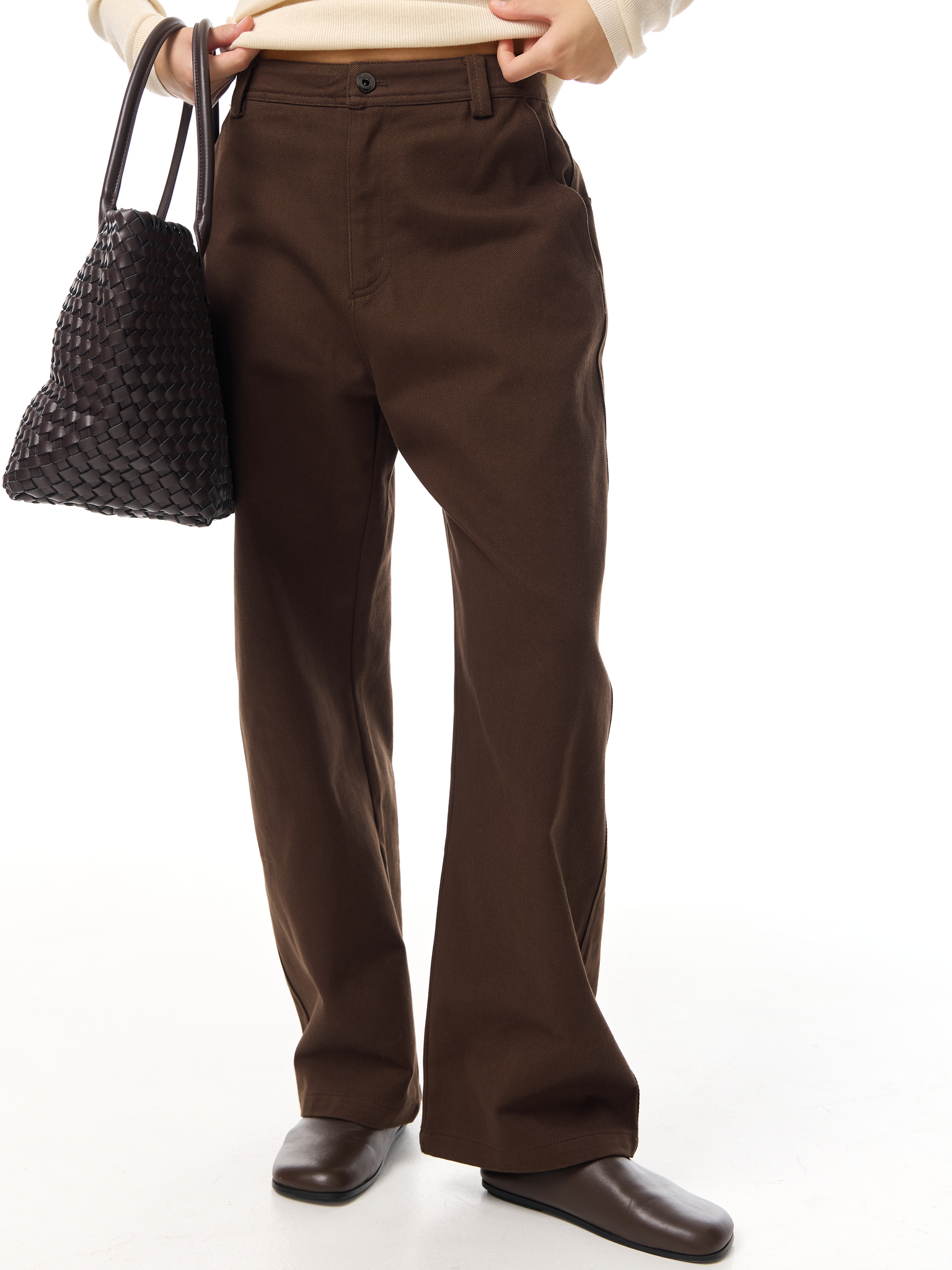 Прямые джинсы с высокой посадкой и лаконичным кроем. Изготовлены из плотного денима, застёгиваются на молнию и пуговицу, дополнены боковыми и задними карманами. Базовая модель в четырёх универсальных оттенках — легко вписывается в гардероб и сочетается как с классическими, так и с повседневными образами.