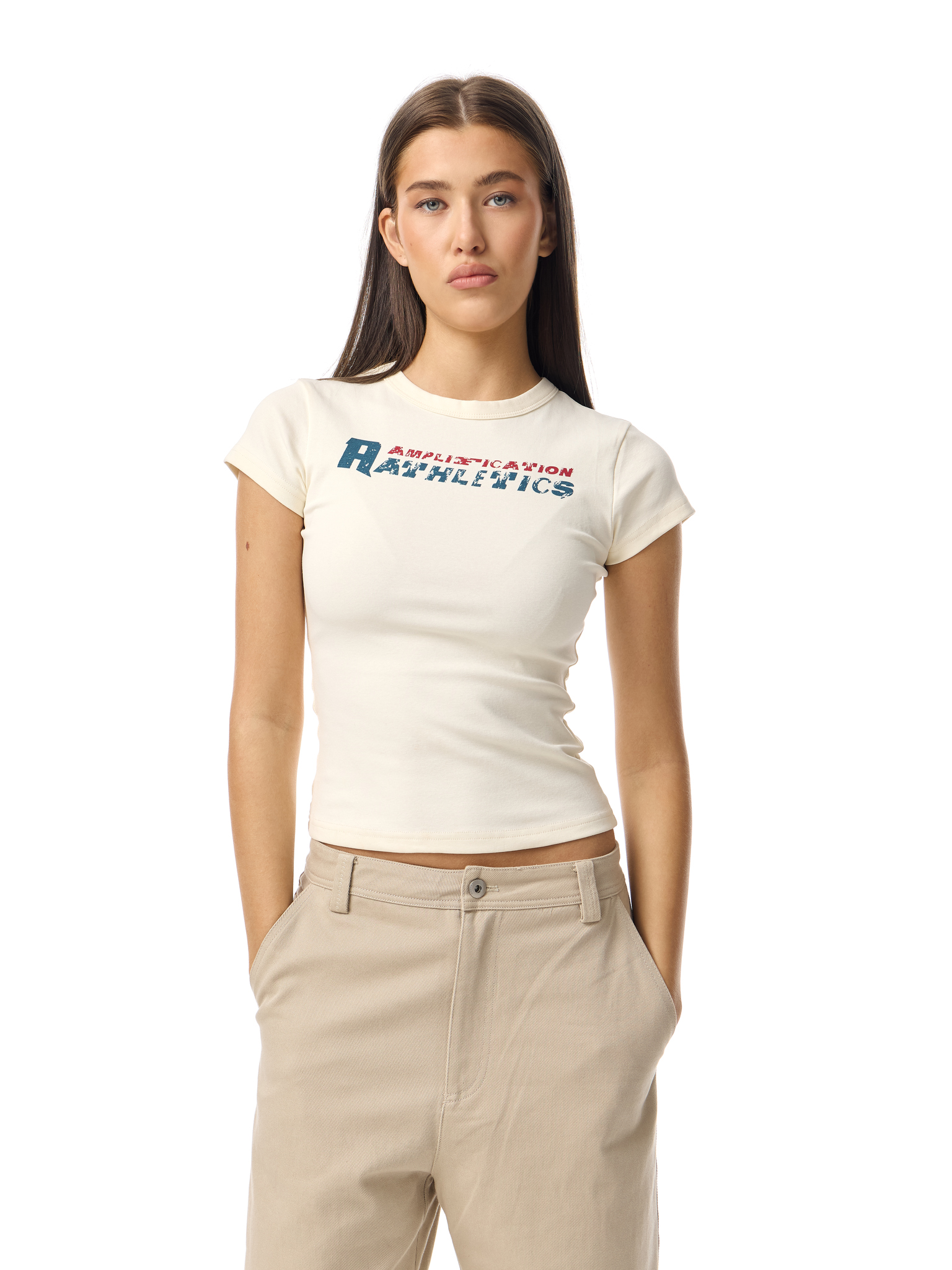 Базовая футболка из мягкого хлопка с короткими рукавами и круглым вырезом. На груди — контрастный принт athletics, придающий спортивный акцент минималистичной модели. Отлично сочетается с денимом и casual-образами.
