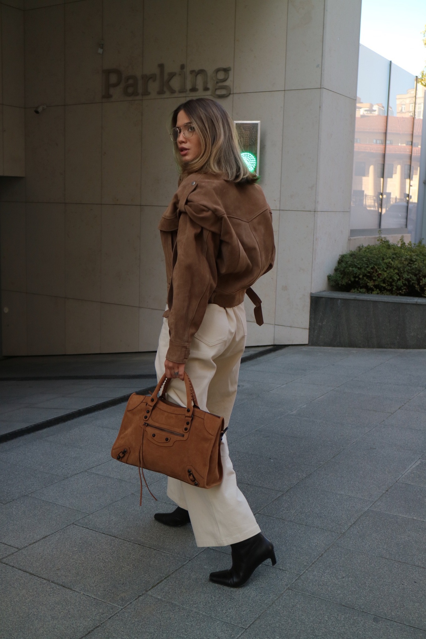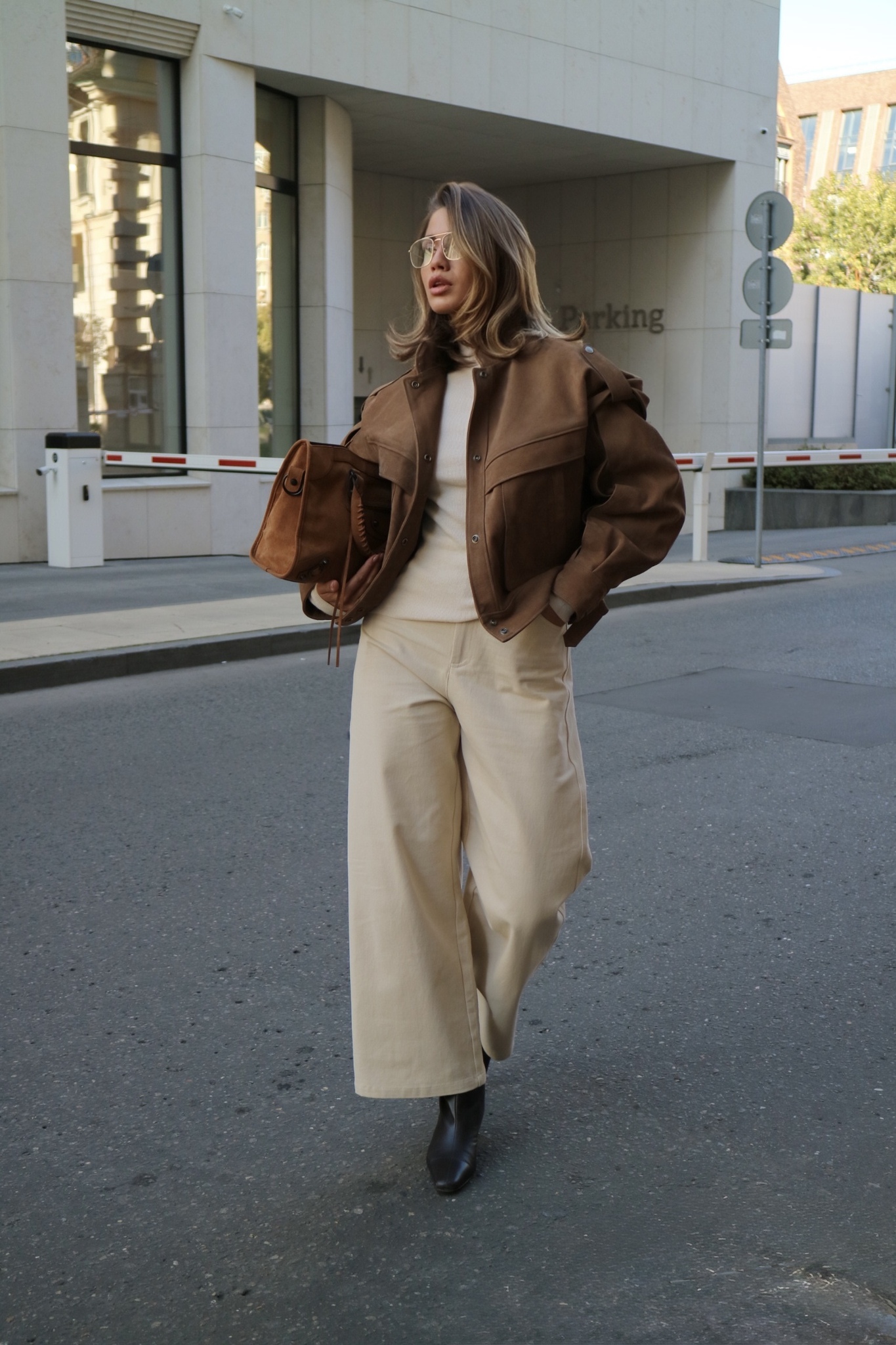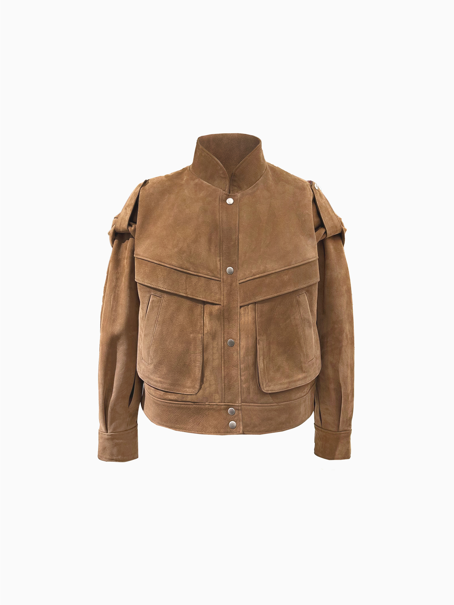 Куртка из натуральной кожи высокого качества, созданная с акцентом на архитектурный силуэт. Чёткие линии и скульптурные формы придают модели выразительность и характер, а плотная фактура кожи сохраняет форму и глубину оттенка. Минималистичная фурнитура и продуманный крой подчеркивают её современный люксовый стиль, делая куртку центром любого образа.