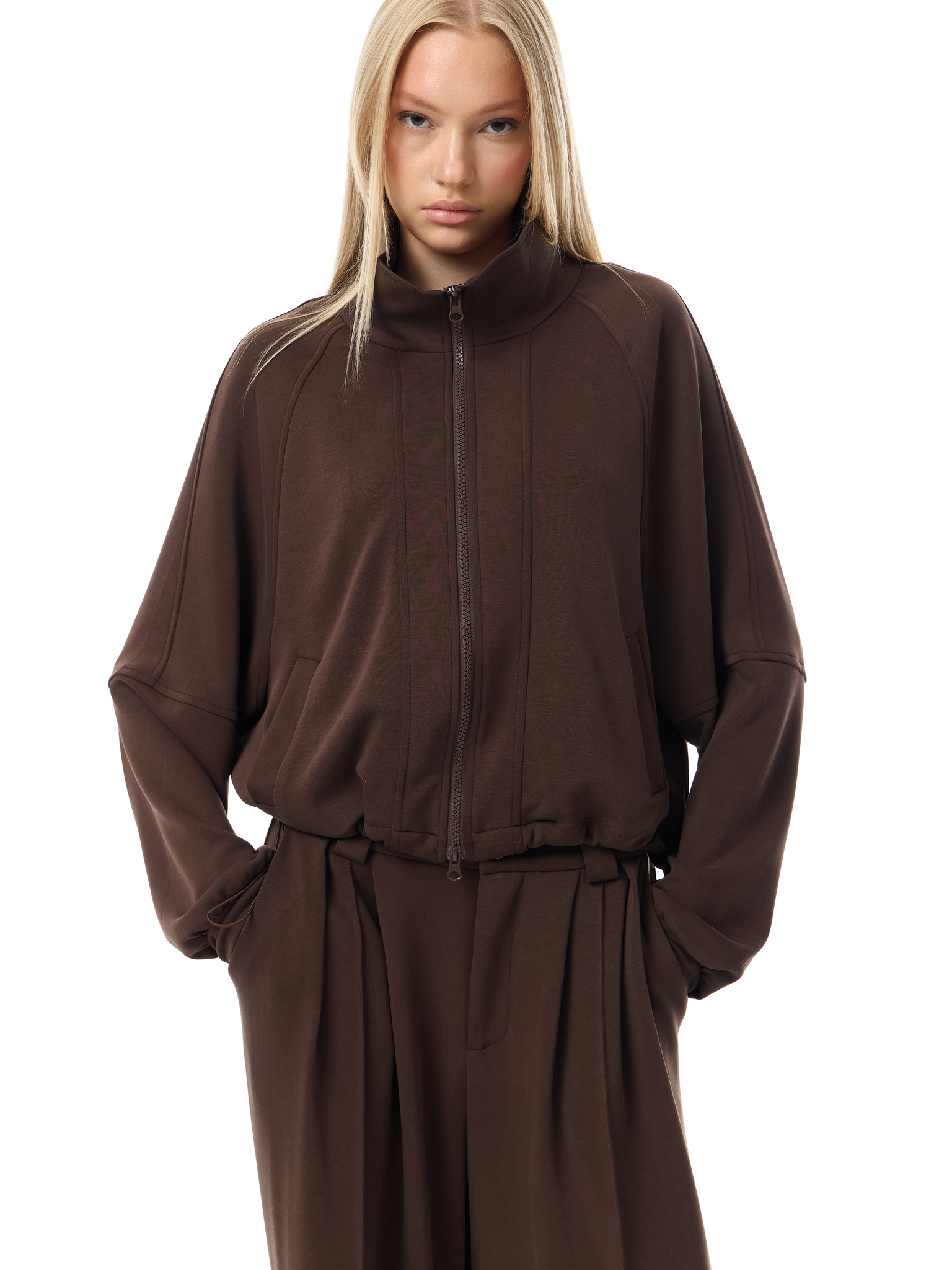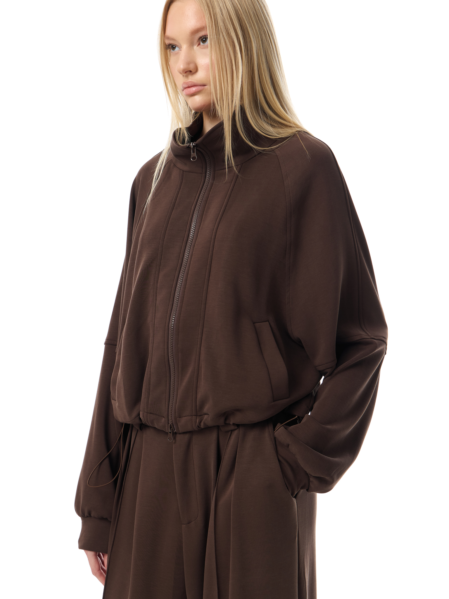 Трикотажное джерси свободного кроя с воротником-стойкой и застёжкой на молнию. Скрытая кулиска по низу позволяет регулировать посадку и менять силуэт. Мягкий материал и лаконичный дизайн делают модель универсальной основой для повседневных образов.