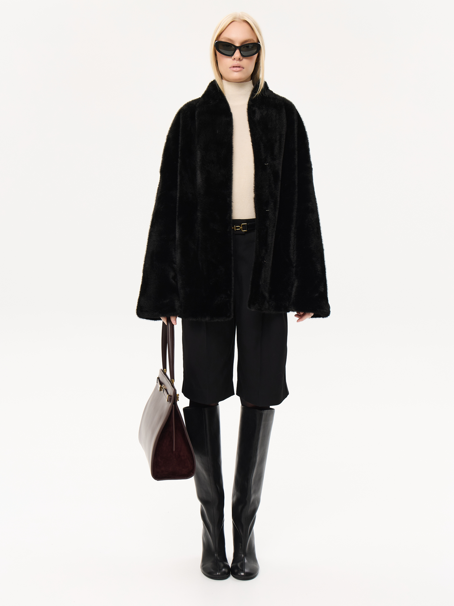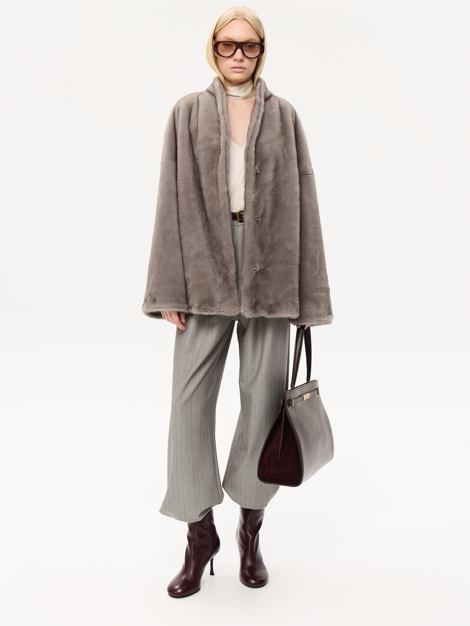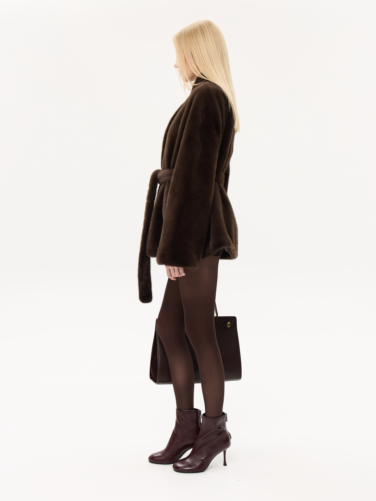 Объёмный силуэт с мягкой линией плеч и широкими рукавами создаёт ощущение лёгкости и уюта. Пояс позволяет трансформировать посадку, подчеркивая талию. Минималистичный дизайн со скрытой застёжкой делает модель универсальной и современно элегантной.